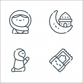 ikony linii Ramadan. zestaw liniowy. wysokiej jakości zestaw linii wektorowych, takich jak zakat, latarnia, muzułmanin, prezent, modlitwa, filiżanka herbaty, wudhu, halal