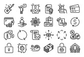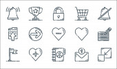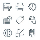 ikony linii interfejsu użytkownika. zestaw liniowy. zestaw linii wektorowych jakości, takich jak audio off, książka kontaktowa, dodać bazę danych, odświeżyć, link, dokument, baza danych, odblokowany, udostępnić
