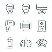 ikony linii usług medycznych. zestaw liniowy. wysokiej jakości zestaw linii wektorowych, takich jak apteczka pierwszej pomocy, oparzenie, maska medyczna