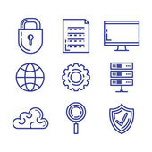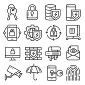 ikony linii zabezpieczeń internetowych. zestaw liniowy. zestaw linii wektorowych jakości, takich jak ubezpieczenie, ochrona, chmura obliczeniowa, błąd, bomba, dane w chmurze, konto prywatne, pamięć masowa w chmurze