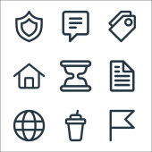 ikony płaskiej linii e-commerce. zestaw liniowy. wysokiej jakości zestaw linii wektorowych, takich jak zniżka, zamek, kosz