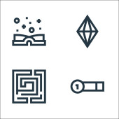 ikony linii historii. zestaw liniowy. wysokiej jakości zestaw linii wektorowych, takich jak ogień, miecz, skrzynia skarbów