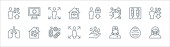 ikony linii wirusów. zestaw liniowy. zestaw linii wektorowych jakości, takich jak wirus, strzykawki, tkanki, służba zdrowia, biuro domowe, wentylator, szpital, kwarantanna