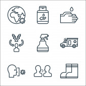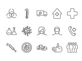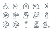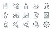 ikony linii wirusów. zestaw liniowy. zestaw linii wektorowych jakości, takich jak zakażenie, mycie rąk, płuca, wirus, epidemia, kwarantanna, bezrobotny, maska twarzy, pielęgniarka