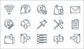 ikony linii interfejsu użytkownika. zestaw liniowy. zestaw linii wektorowych jakości, takich jak dokument, bateria, wifi, sterowanie, e-mail, folder, logowanie