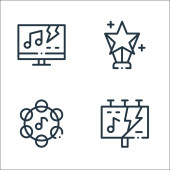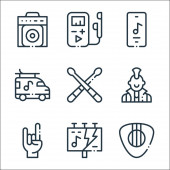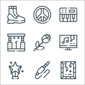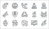 Ikony rock 'n' rolla. zestaw liniowy. wysokiej jakości zestaw linii wektorowych, takich jak rock, spokój, kalendarz