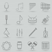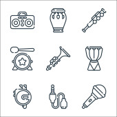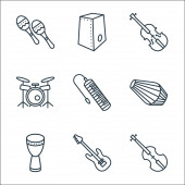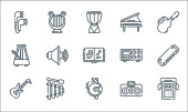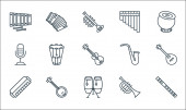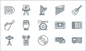 ikony linii instrumentów muzycznych. zestaw liniowy. wysokiej jakości zestaw linii wektorowych, takich jak mikrofon, fortepian, ksylofon