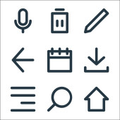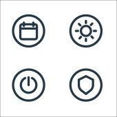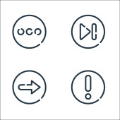 podstawowe ikony linii ui. zestaw liniowy. jakość wektor linii zestaw, takich jak zamek, widok, jasność, dodać, więcej, grać, pin, powiadomienie