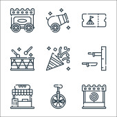 ikony linii cyrkowej. zestaw liniowy. wysokiej jakości zestaw linii wektorowych, takich jak koło, armata, lizak