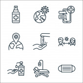 Zdjęcie "myć ręce ikony linii. zestaw liniowy. wysokiej jakości zestaw linii wektorowych, takich jak spray czyszczący, czyszczone, mycie rąk" może być wykorzystywane do celów osobistych i komercyjnych zgodnie z warunkami zakupionej licencji Royalty-free. Obraz jest dostępny do pobrania w jakości wysokiej rozdzielczości do 5760x3840.