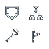 Ikony baseballa. zestaw liniowy. zestaw linii wektorowych jakości, takich jak trofeum, strategia, szatnia