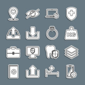ikony linii interfejsu użytkownika. zestaw liniowy. zestaw linii wektorowych jakości, takich jak share, home, navigation, bin, tag, flag, pełny ekran, ulubiony