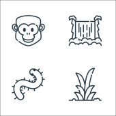 ikony linii dżungli. zestaw liniowy. wysokiej jakości zestaw linii wektorowych, takich jak winorośle, tiki, papuga