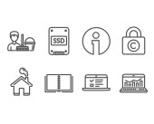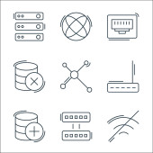 ikony linii baz danych i serwerów. zestaw liniowy. zestaw linii wektorowych jakości, takich jak dane, dysk ssd, statystyka