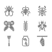 ikony linii owoców morza. zestaw liniowy. wysokiej jakości zestaw linii wektorowych, takich jak kałamarnica, ogórki, homar