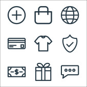 ikony linii e-commerce. zestaw liniowy. zestaw linii wektorowych jakości, takich jak płatność mobilna, sklep internetowy, sklep internetowy