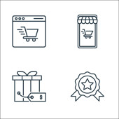 ikony linii e-commerce. zestaw liniowy. zestaw linii wektorowych jakości, takich jak certyfikat gwarancji, koszyk, koszyk, torby, etykieta rabatowa, koszyk, etykieta sprzedaży,