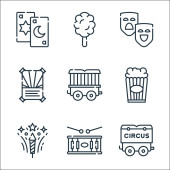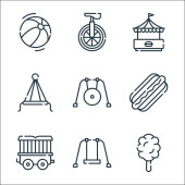 ikony linii cyrkowej. zestaw liniowy. wysokiej jakości zestaw linii wektorowych, takich jak lody, balon, gong