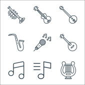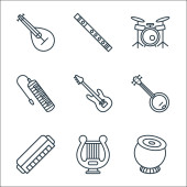 ikony linii instrumentów muzycznych. zestaw liniowy. wysokiej jakości zestaw linii wektorowych, takich jak gitara basowa, nuty muzyczne, werbel