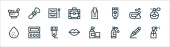 ikony linii urody. zestaw liniowy. wysokiej jakości zestaw linii wektorowych, takich jak lustro kieszonkowe, gąbka, lotos, pączek bawełny, szminka, szczotka do włosów, perfumy, manicure