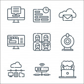 ikony linii telekomunikacyjnych. zestaw liniowy. wysokiej jakości zestaw linii wektorowych, takich jak zadanie, stadiony, intranet