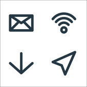 ikony linii interfejsu użytkownika. zestaw liniowy. zestaw linii wektora jakości, takich jak wstecz, powiadomienie, e-mail