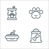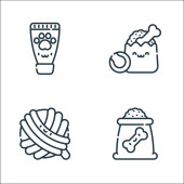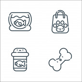 ikony linii zwierząt domowych. zestaw liniowy. wysokiej jakości zestaw linii wektorowych, takich jak zabawki dla kotów, szampon dla zwierząt domowych, żywność w puszkach, lokalizacja, kości, jedzenie dla ryb, śmietana, torba na zakupy