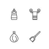 ikony linii urządzeń krajobrazowych. zestaw liniowy. wysokiej jakości zestaw linii wektorowych, takich jak spodnie, spray, owoce