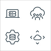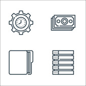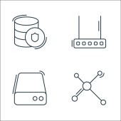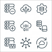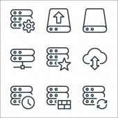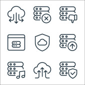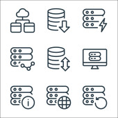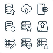 ikony linii serwerów biurowych. zestaw liniowy. zestaw linii wektorowych jakości, takich jak połączenie, ustawienia, dodawanie, edycja, link, eksport, prędkościomierz, serwer