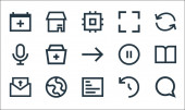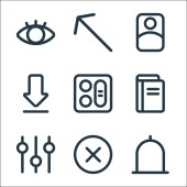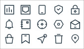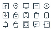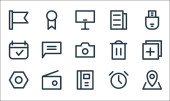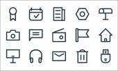 ikony linii interfejsu użytkownika. zestaw liniowy. zestaw linii wektorowych jakości, takich jak wiadomość, ulubione, czat, plik, słuchawki, książka, dodać, program, usunąć