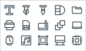 ikony linii interfejsu użytkownika. zestaw liniowy. zestaw linii wektorowych jakości, takich jak usb, wiadomość, wyświetlacz, usuwanie, słuchawki, aparat fotograficzny, flaga, ustawienia, program