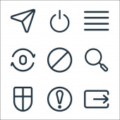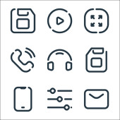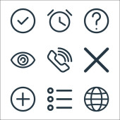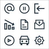 ikony linii interfejsu użytkownika. zestaw liniowy. wysokiej jakości zestaw linii wektorowych, takich jak słuchawki, dodać, lokalizacja, zegar, wiadomość, flaga, skrzynka pocztowa, ustawienia