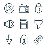 podstawowe ikony linii ui. zestaw liniowy. zestaw linii wektorowych jakości, takich jak bezpieczeństwo, użytkownik, usuń