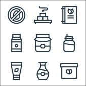 ikony linii medycyny. zestaw liniowy. wysokiej jakości zestaw linii wektorowych, takich jak krople, leki, ajurwedyjskie, herbata ziołowa, musujące, glukoza, leki, płyn do płukania jamy ustnej
