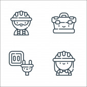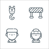 ikony dnia pracy. zestaw liniowy. wysokiej jakości zestaw linii wektorowych, takich jak spawacz, stożek, hostessa