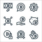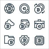 ikony linii kryptowaluta. zestaw liniowy. zestaw linii wektorowych jakości, takich jak kryptowaluta, torba na zakupy, bitcoin