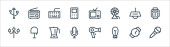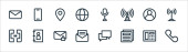 ikony linii komunikacyjnych. zestaw liniowy. zestaw linii wektorowych jakości, takich jak wywołanie, wiadomość, gazeta, wiadomość, komputer, internet, książka telefoniczna