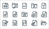 ikony linii folderów. zestaw liniowy. zestaw linii wektorowych jakości, takich jak ustawienie, zegar, pobierz, minus, blok, blok, użytkownik, ekran, pomoc