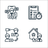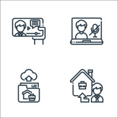 ikony linii domowej. zestaw liniowy. wysokiej jakości zestaw linii wektorowych, takich jak płatność, wideo, praca w domu, rozmowy wideo, sieć, dostawa do domu, tworzenie sieci, wyciszenie