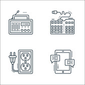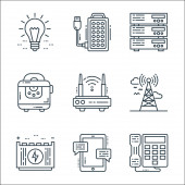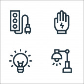 elektronarzędzia i ikony linii. zestaw liniowy. wysokiej jakości zestaw linii wektorowych, takich jak gniazdo elektryczne, gniazdo elektryczne, żarówka