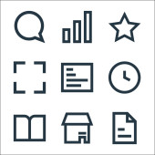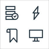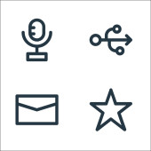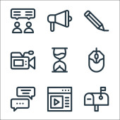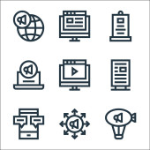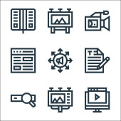 ikony linii multimedialnych. zestaw liniowy. zestaw linii wektorowych jakości, takich jak pin, play, share