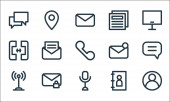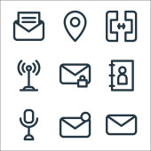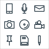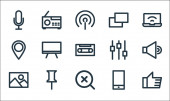 ikony linii multimedialnych. zestaw liniowy. zestaw linii wektorowych jakości, takich jak laptop, wyszukiwanie, mikrofon, equalizer, wysyłanie, mail, wyszukiwanie, kalendarz