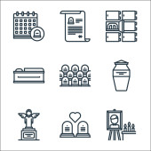 ikony linii pogrzebowej. zestaw liniowy. zestaw linii wektorowych jakości, takich jak fotografia, grób, pogrzeb