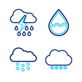 ikony linii pogodowych. zestaw liniowy. wysokiej jakości zestaw linii wektorowych, takich jak deszcz, półksiężyc, deszcz