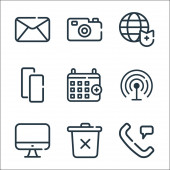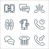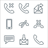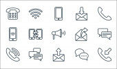 ikony linii komunikacyjnych. zestaw liniowy. zestaw linii wektorowych jakości, takich jak wiadomości, nieodebrane połączenie, smartfon, interakcja, komunikacja, telefon, smartfony, poczta