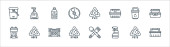 ikony obozowiska. zestaw liniowy. wysokiej jakości zestaw linii wektorowych, takich jak puszki, moka pot, gaz kempingowy, stół piknikowy, lornetka, lina, zapalniczka, śpiwór