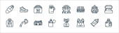 ikony obozowiska. zestaw liniowy. wysokiej jakości zestaw linii wektorowych, takich jak moka pot, kolba, apteczka, zapalniczka, lornetka, namiot, niedźwiedź, kurtka