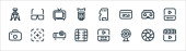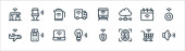 ikony linii podróży. zestaw liniowy. zestaw linii wektorowych jakości, takich jak statek, klamka, koło ratunkowe, mapa, kalendarz, wifi, pogoda