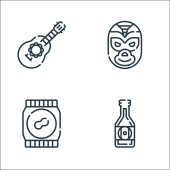 Zdjęcie "Meksykańskie ikony linii. zestaw liniowy. wysokiej jakości zestaw linii wektorowych, takich jak szalik, czaszka, krzyż, wapno, kukurydza, bęben, marakasy, piwo, słońce" może być wykorzystywane do celów osobistych i komercyjnych zgodnie z warunkami zakupionej licencji Royalty-free. Obraz jest dostępny do pobrania w jakości wysokiej rozdzielczości do 5760x3840.