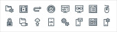 wznowić pracę ikony linii. zestaw liniowy. zestaw linii wektorowych jakości, takich jak ostrość, instrukcja obsługi, jak, sieć, profil online, marketing mobilny, e-mail, miejsce pracy